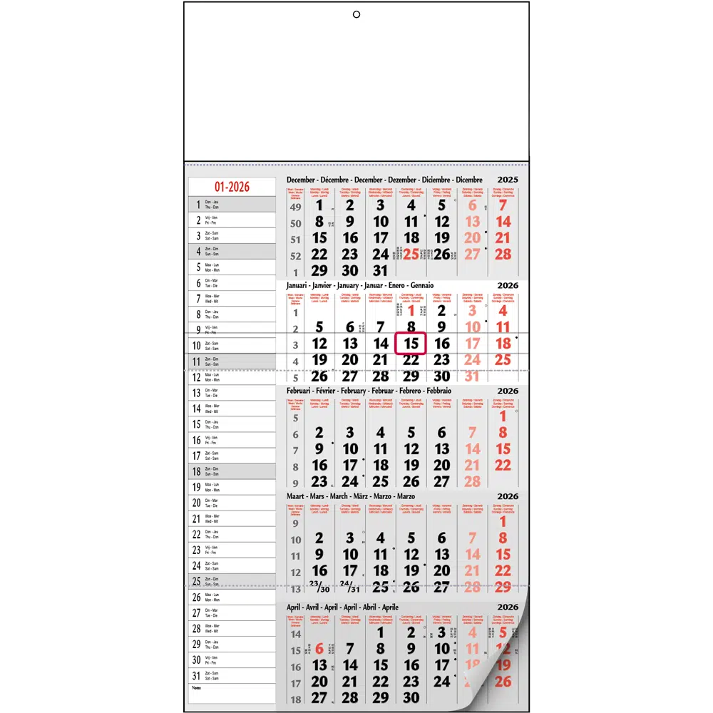 - 5-Maandkalender met overzicht van 5 maanden